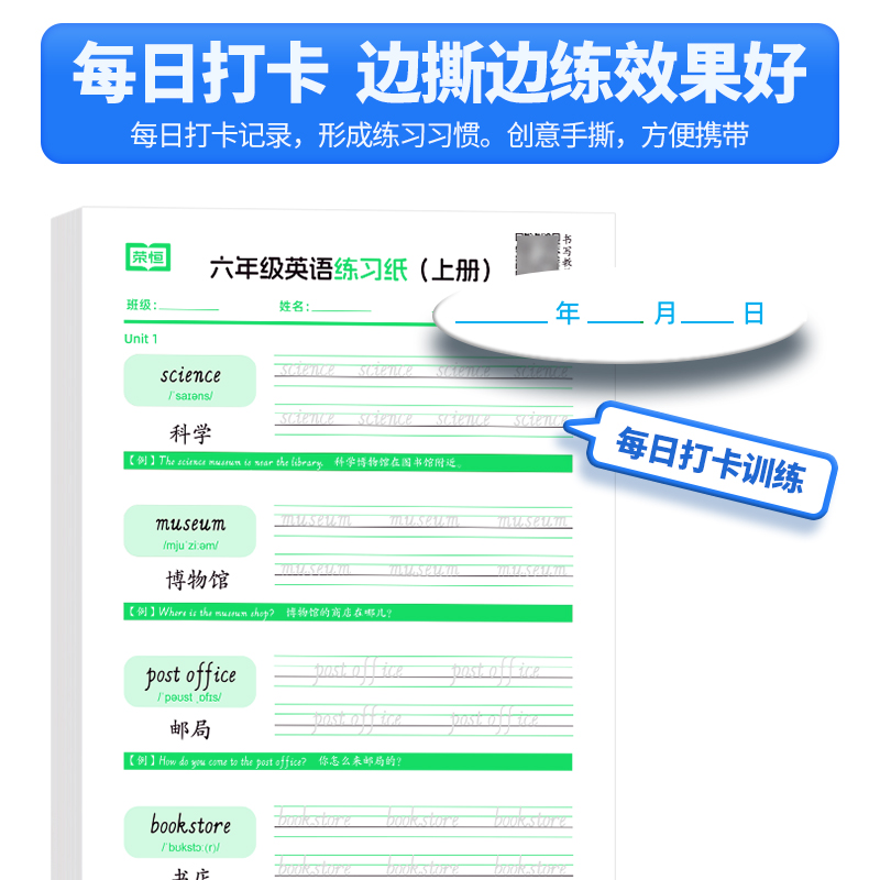小学英语默写纸单词默写本专项人教版 课本同步手撕字帖三四五六年级上下册英文记背神器语法四线汉英互译作业本英语听力读写练习