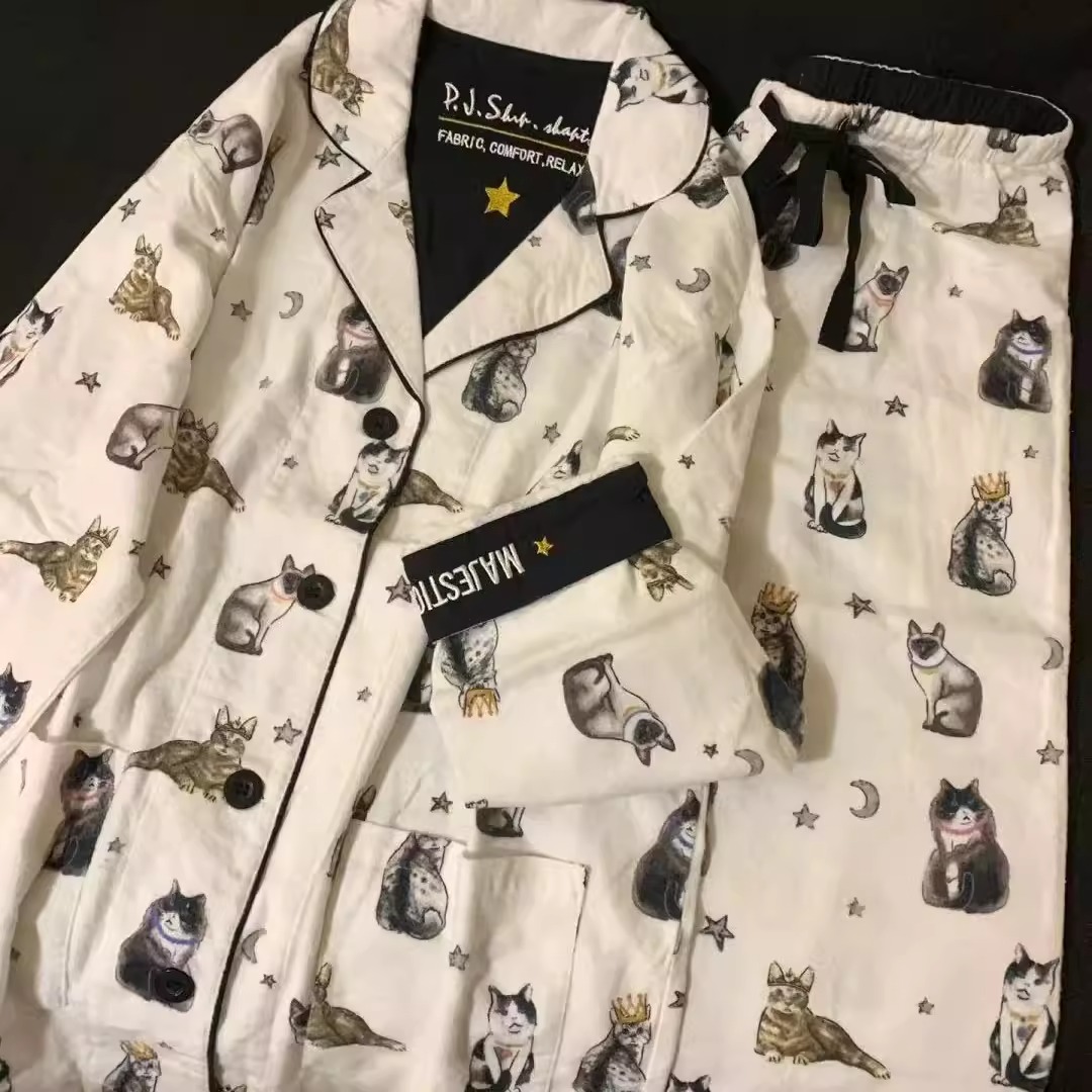 可外穿家居服套装 猫人睡衣女士棉质春秋季 长袖 带胸垫2025年新款 款