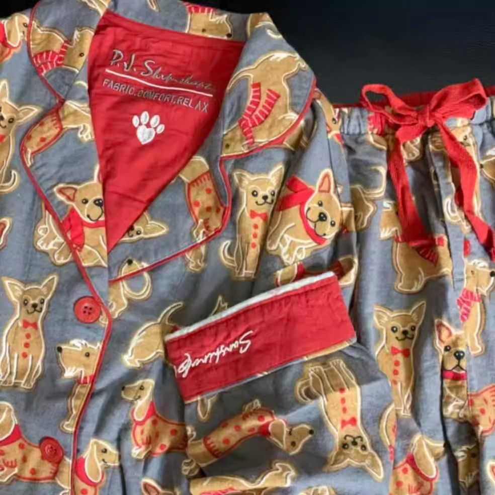 纯棉女士长袖 睡衣新款 秋款 家居服秋冬全棉大码 芬腾春秋季 套装 女款