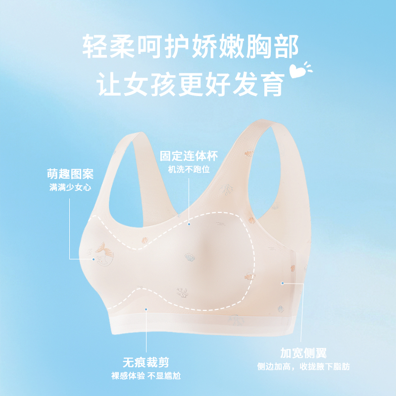 猫人少女内衣A类发育期学生文胸无痕透气薄款 高中生女孩运动背心