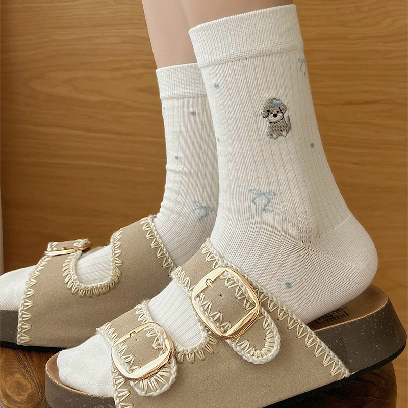 长袜 白色搭配拖鞋 无骨袜子女春秋款 中筒袜纯棉防臭堆堆月子袜夏季