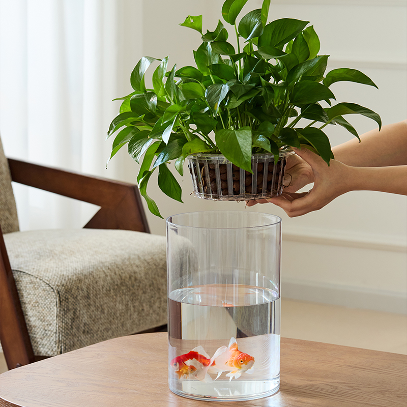 定植篮水培植物玻璃透明加厚直筒圆柱形花瓶简约白掌水培瓶