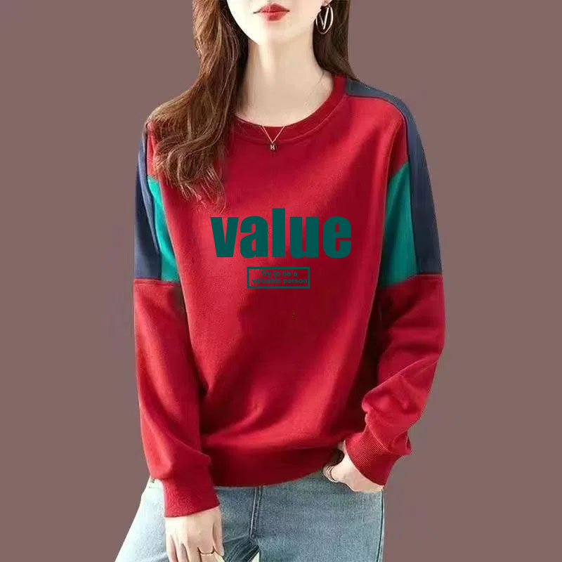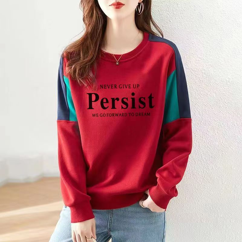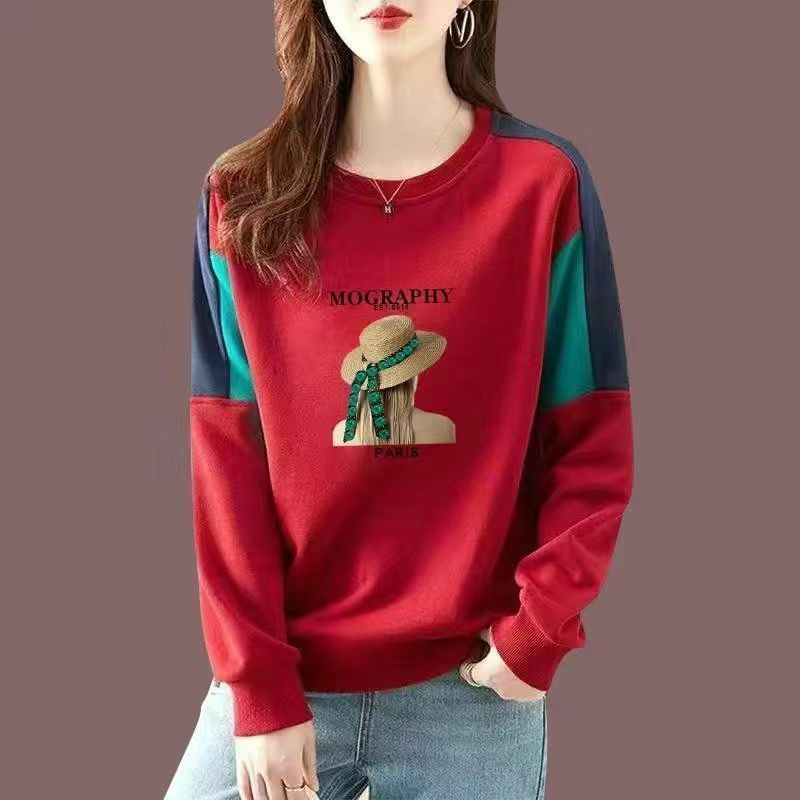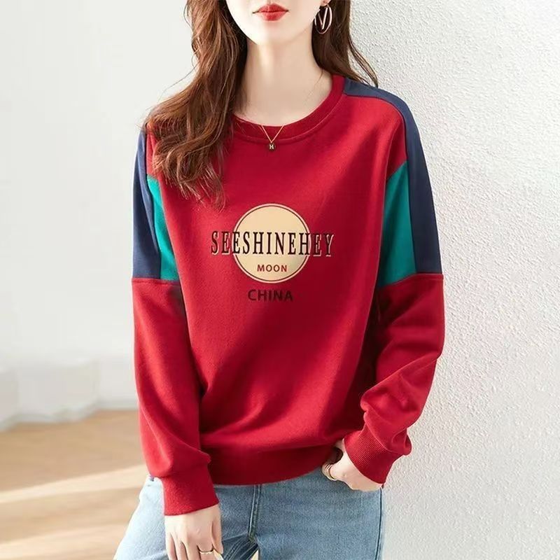 宽松新款 卫衣女大码 春秋全棉上衣服J 撞色拼接长袖 100%纯棉打底衫