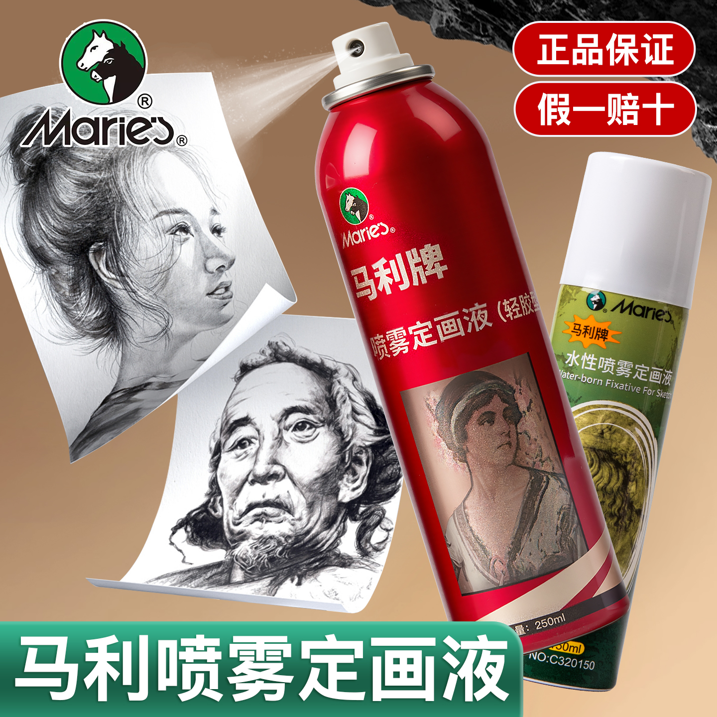 马利牌素描油画定画液喷雾棒色粉铅笔炭笔水彩丙烯定型美术生专用水性重胶轻胶防水美术画画作品固色定型保护