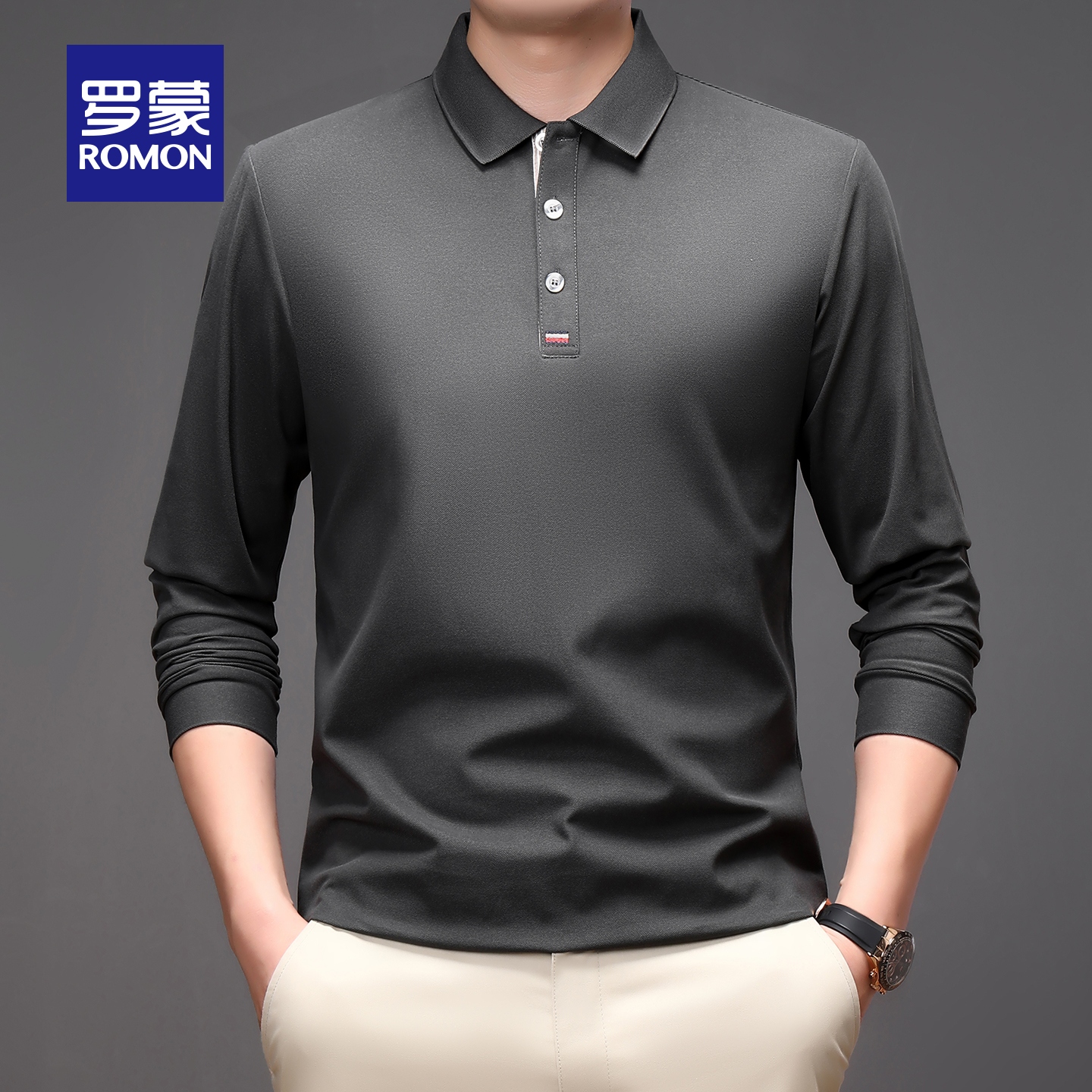 新款 罗蒙男士 2025秋季 POLO衫 纯色百搭简约休闲翻领T恤男 商务长袖