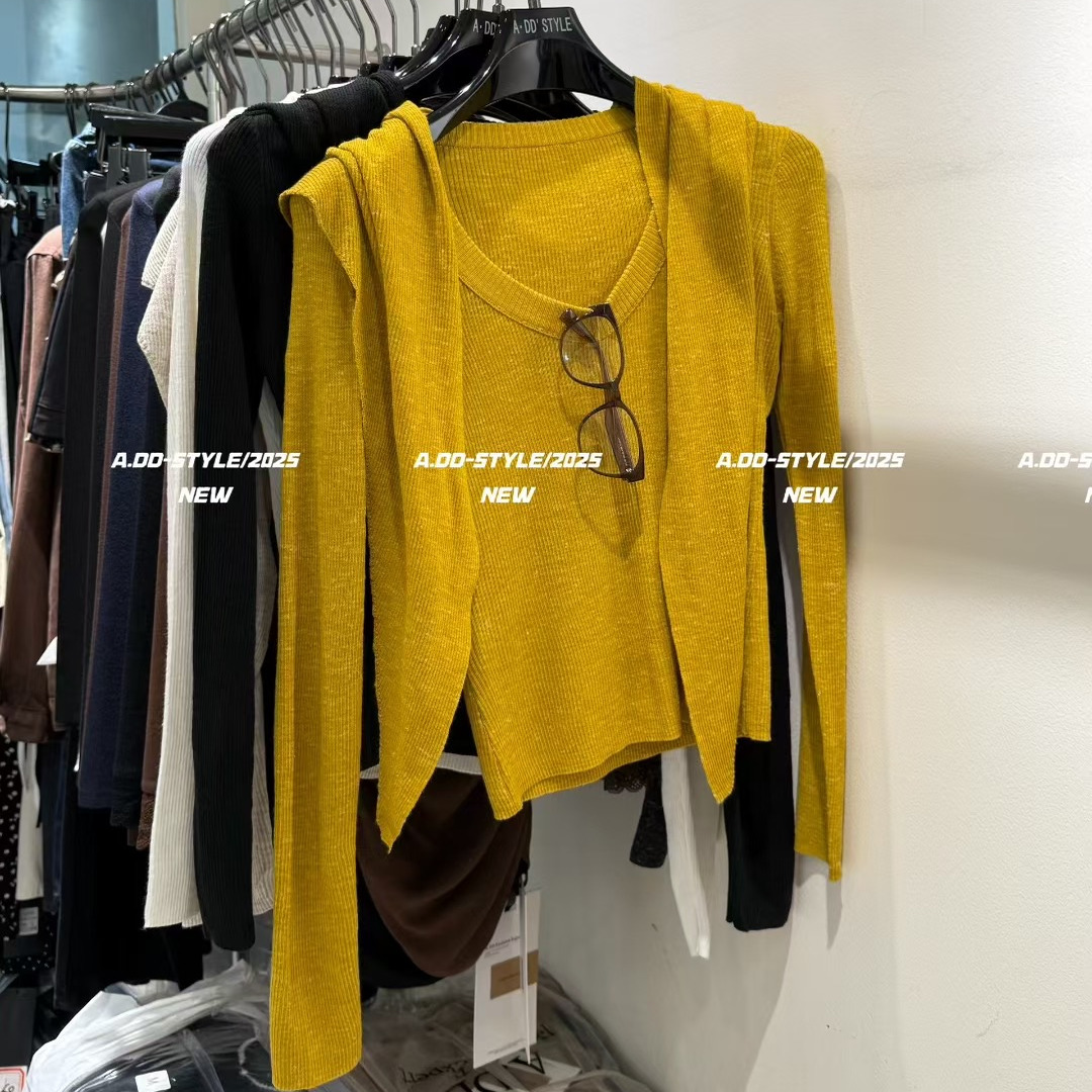 针织衫 显瘦纯色U领配披肩长袖 洋气上衣 2025洋气百搭修身 早秋新款