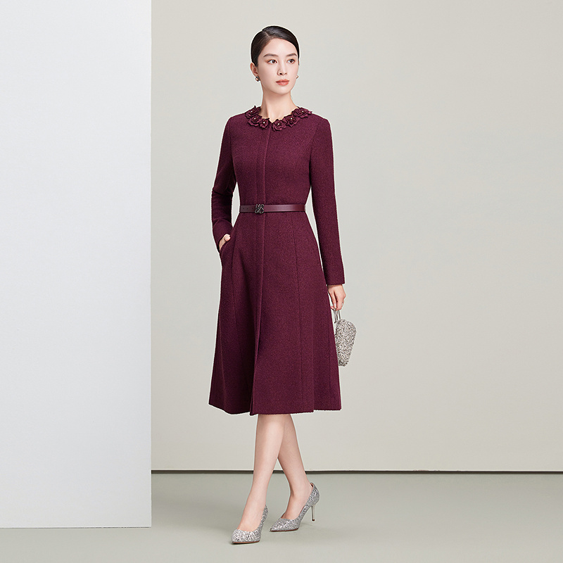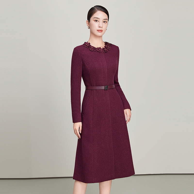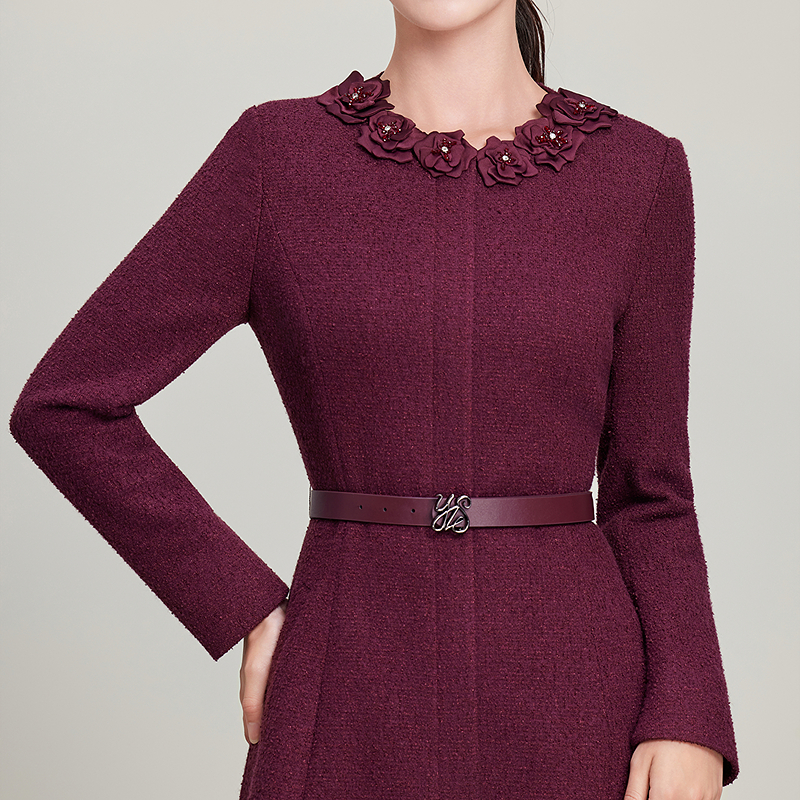 裙子 出席重要场合 赢智尚酒红色法式 小资小香风连衣裙2025冬新款
