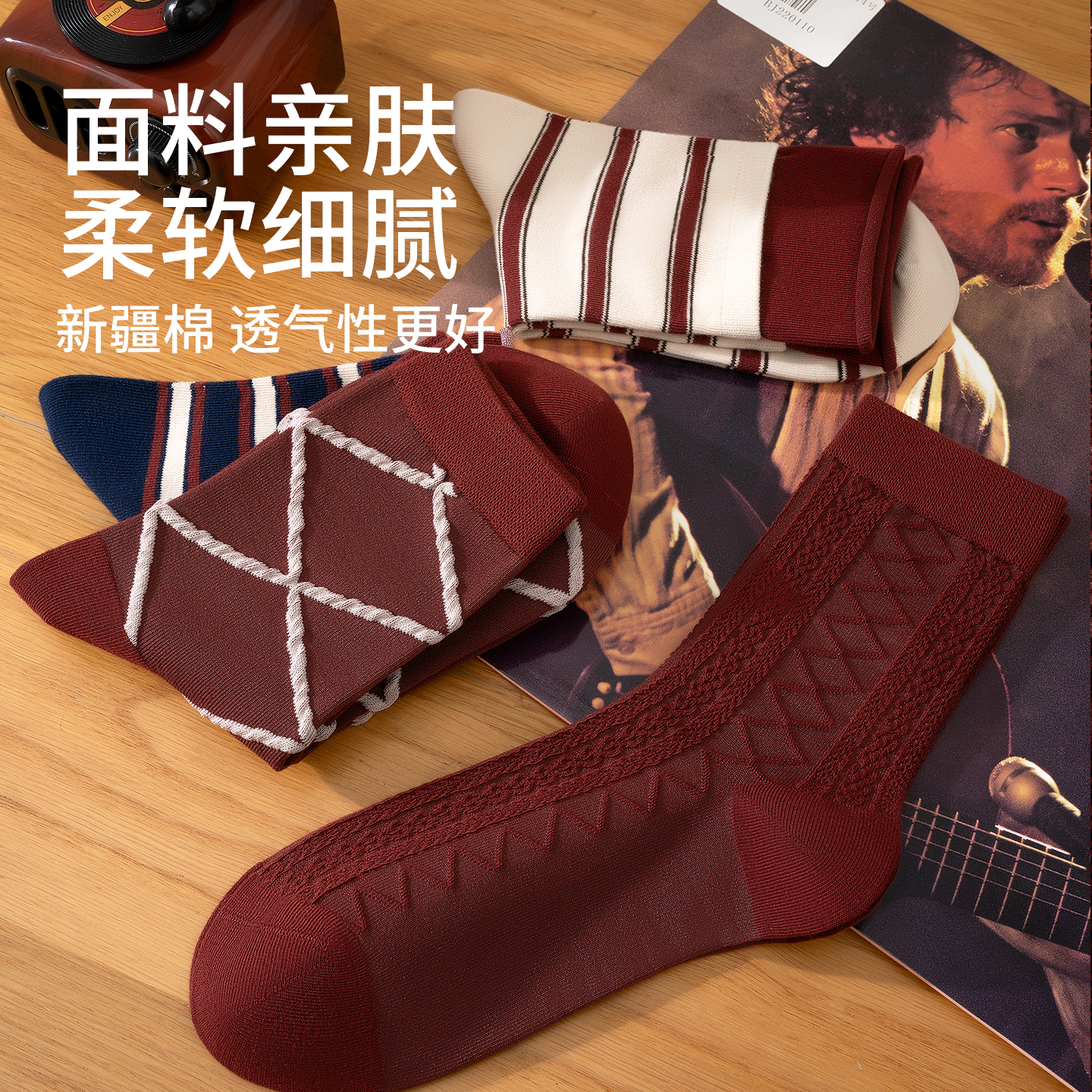 红袜子结婚情侣一对喜字女纯棉中筒袜新婚船袜大红色本命年蛇年男