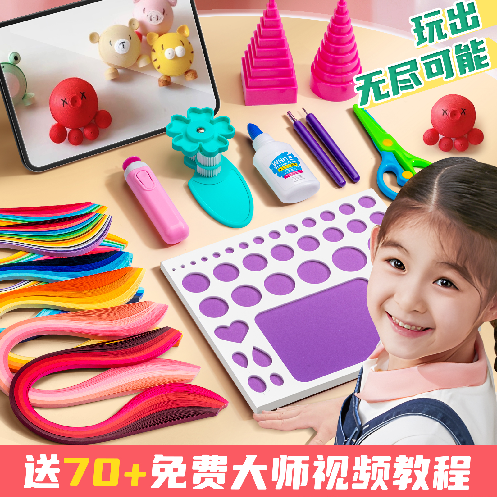 衍纸材料包套装 初学者衍纸画手工diy工具衍纸纸条胶水学生纸艺电动笔镊子儿童彩色线稿图收纳盒衍纸梳卷纸器