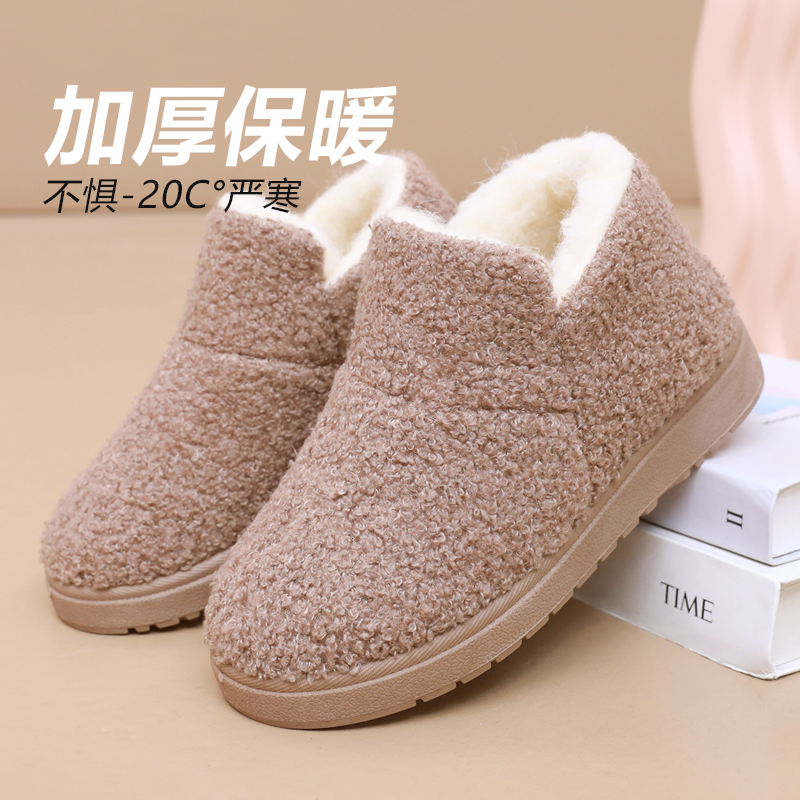 冬季 中年妈妈靴 加绒保暖雪地靴女士防滑暖和毛毛靴软底轻便懒人鞋