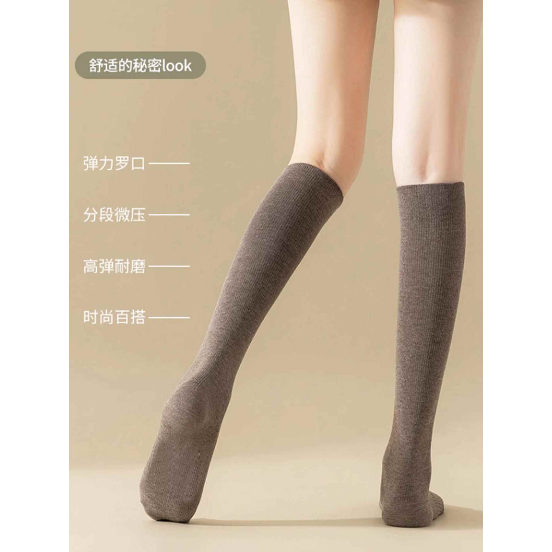 黑色小腿袜女微压显瘦及膝袜春秋季 日系学院风jk长筒袜搭配小皮鞋