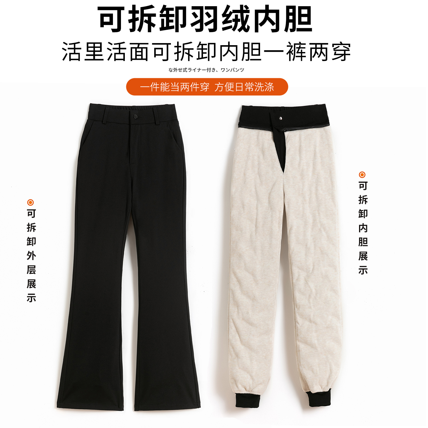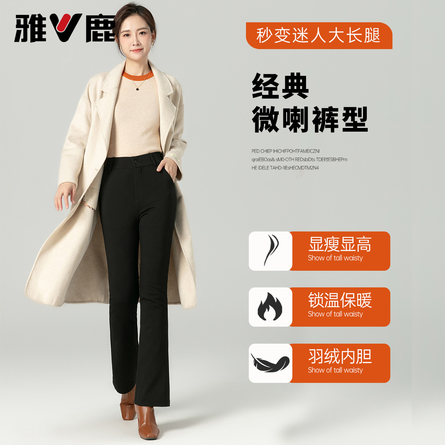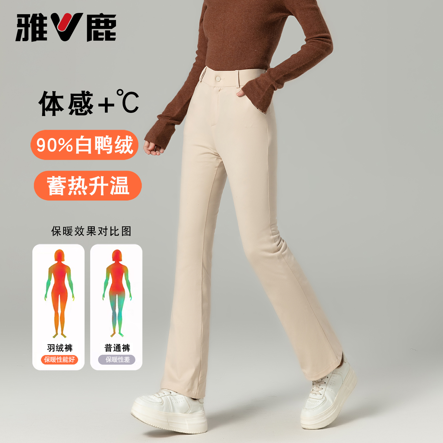 高腰显瘦微喇可拆卸加绒加厚白鸭绒保暖棉裤 雅鹿羽绒裤 女外穿时尚