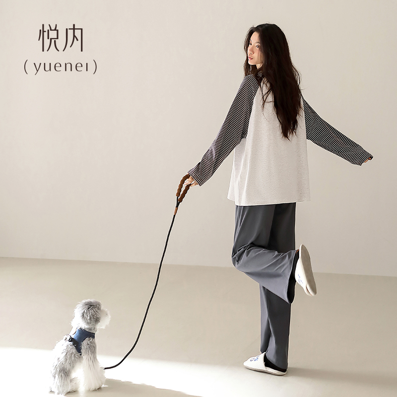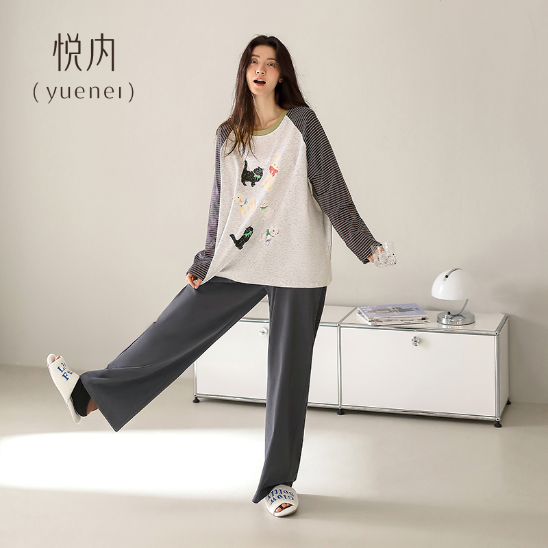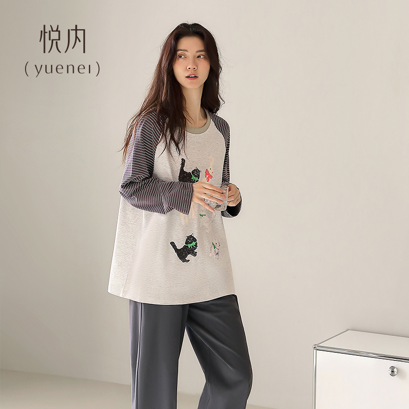 家居服秋冬宽松时尚 纯棉长袖 卡通猫咪可外穿 秋季 悦内睡衣女春秋款