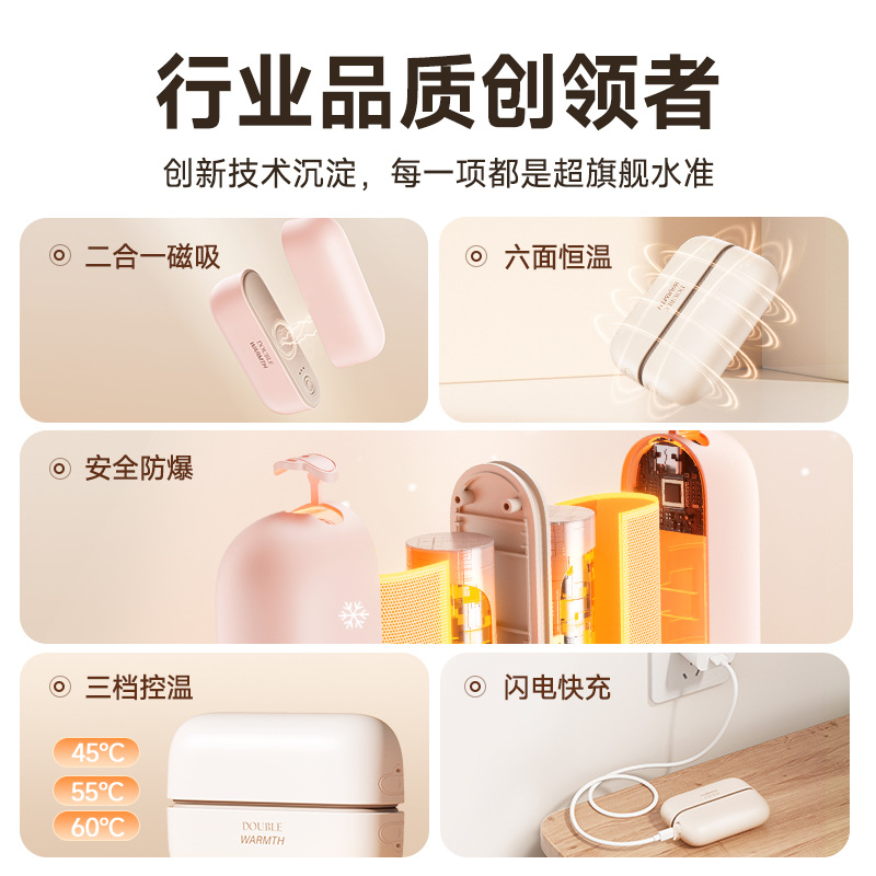 磁吸暖手宝创意分体式 发热暖宝宝 USB充电暖手宝二合一随身便携式