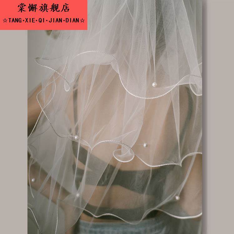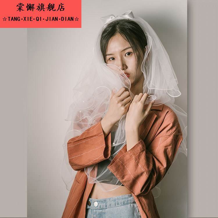 多层蓬蓬求婚用女生头纱新娘蝴蝶结结婚简约覆古婚纱头纱短款 超仙