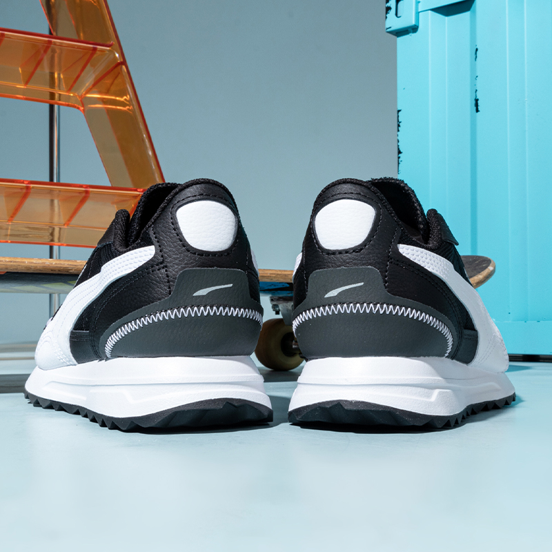 秋季 新款 官方正品 安踏男鞋 休闲跑步鞋 男款 黑色皮面男士 子男 运动鞋