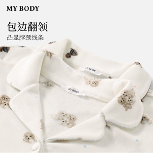 开衫 商场同款 睡衣女甜萌动物印花长袖 新款 海岛绒家居服 MYBODY秋季