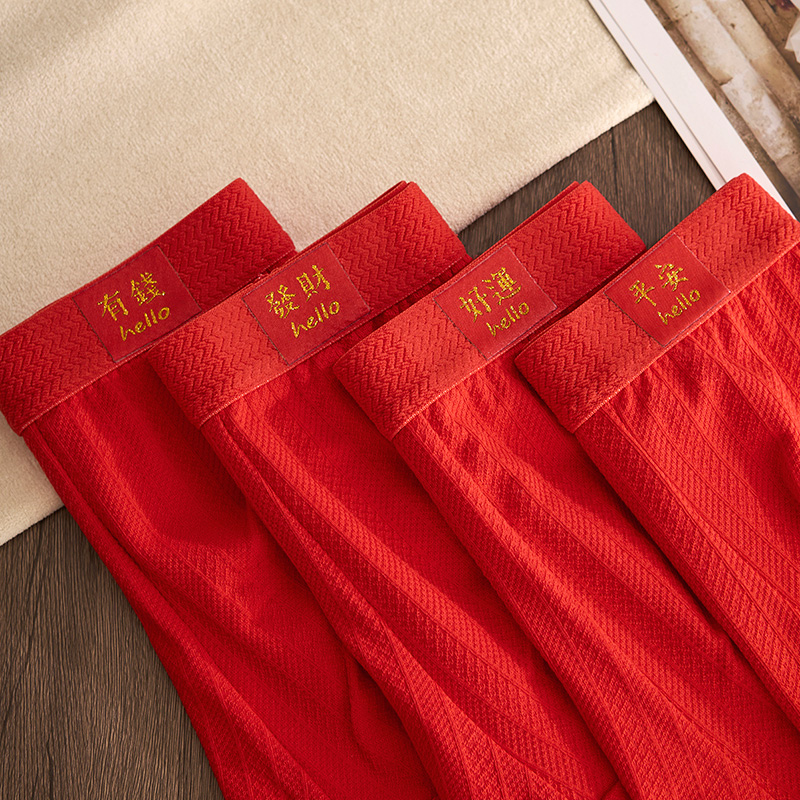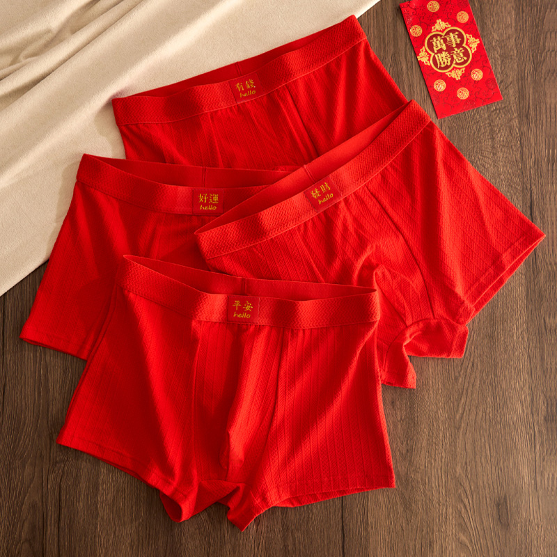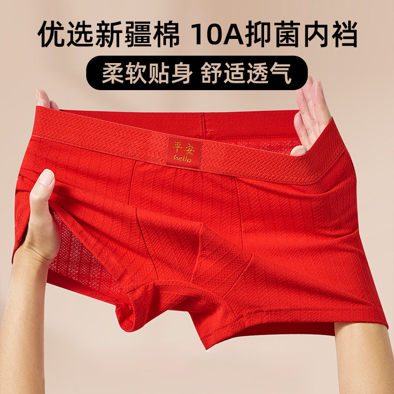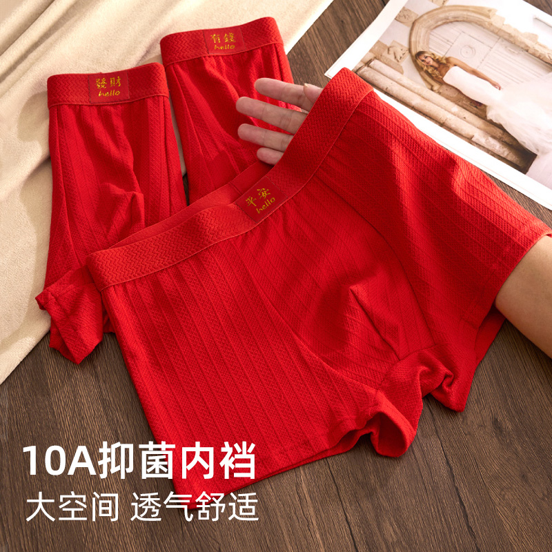 抗菌裆透气平角裤 结婚本命年四角底裤 红运 纯棉红色内裤 嘉迪丝男士