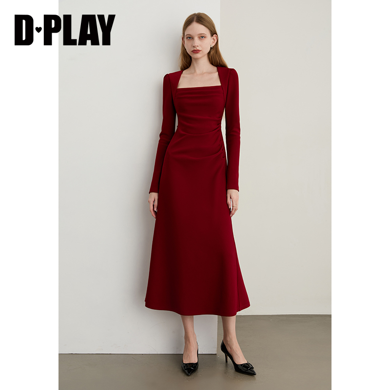 DPLAY2025秋季 腰精裙系列红色连衣裙订婚礼服红裙长裙敬酒长裙女