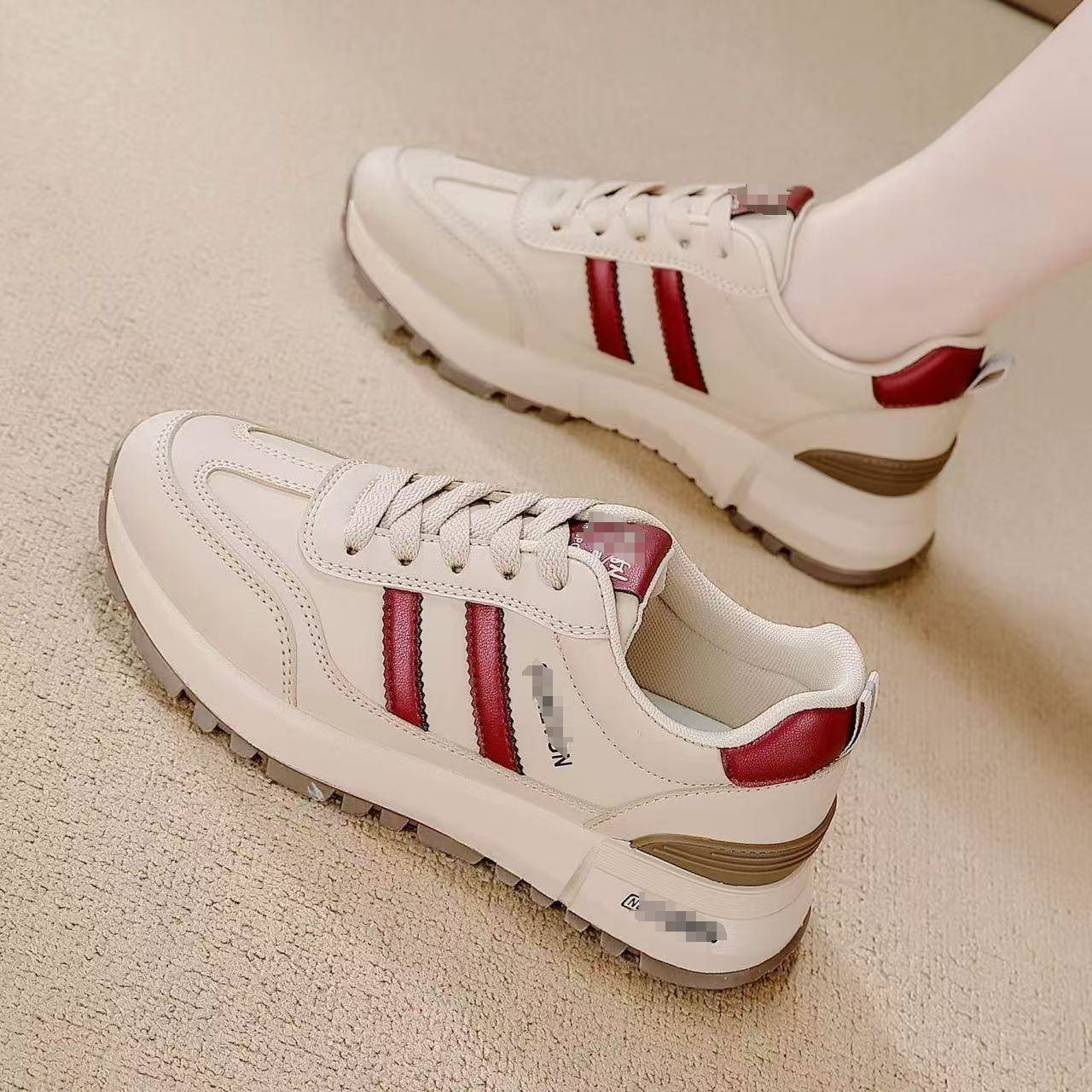 秋季 红色平底鞋 芭蕾法式 浅口婚鞋 达芙妮羊皮单鞋 豆豆鞋 女2025新款
