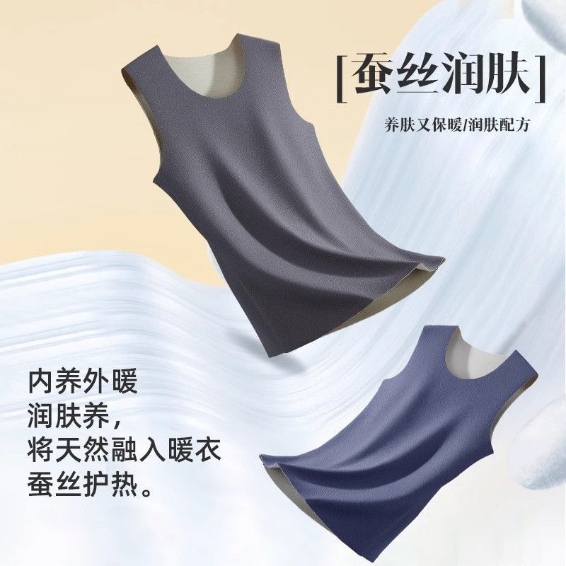 内穿打底上衣马甲内衣 无痕加绒德发热男款 猫人保暖背心男士 秋冬季