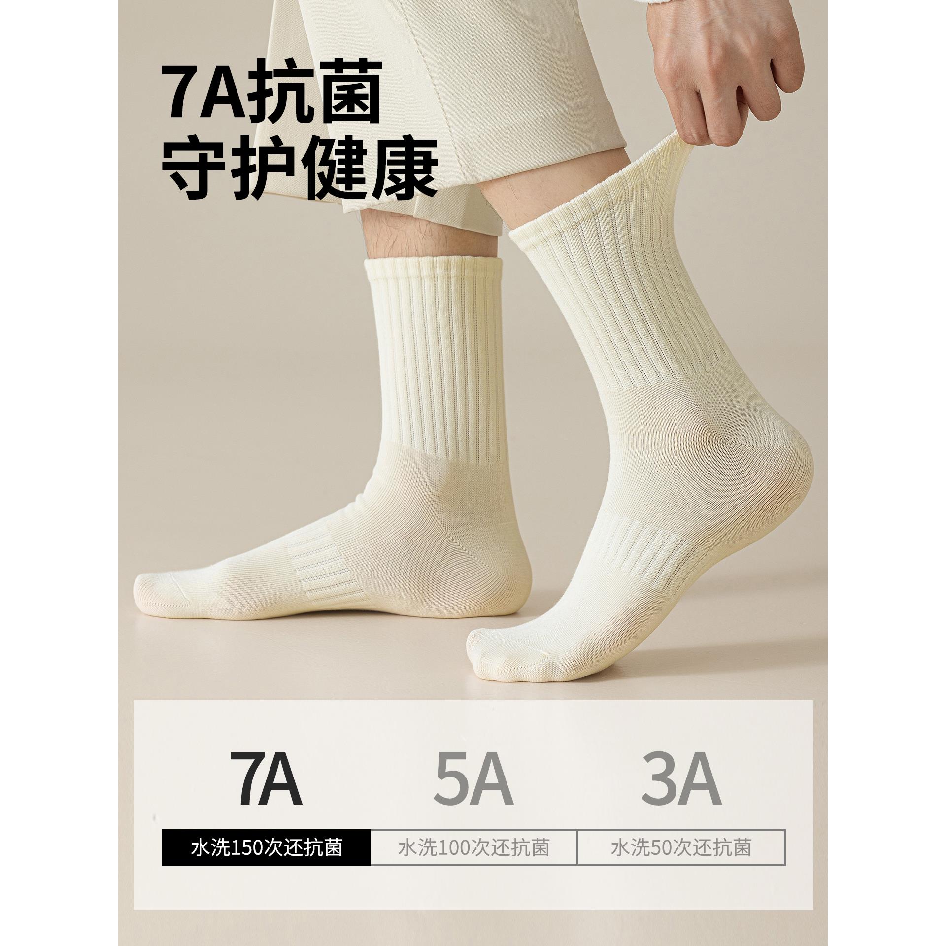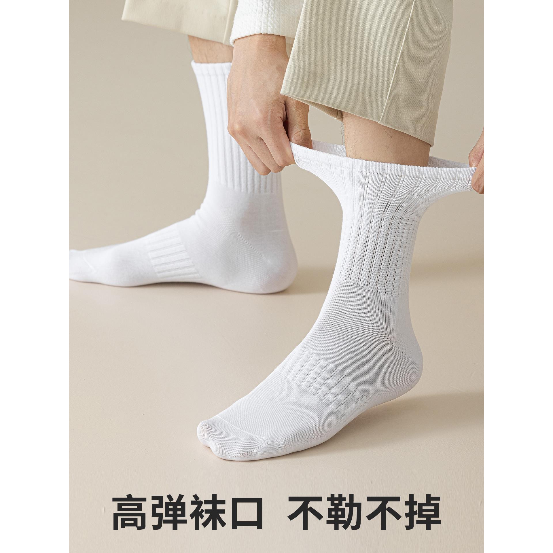 白色袜子男士 纯色短筒袜春秋长筒袜 新疆棉运动防臭吸汗中筒袜夏季