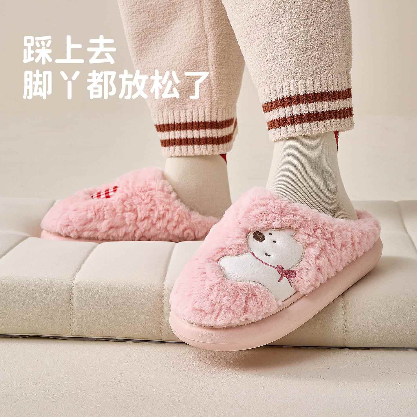 新款 女款 冬季 防滑老人抗菌女款 室内家居防滑防臭毛绒可爱棉 棉拖鞋