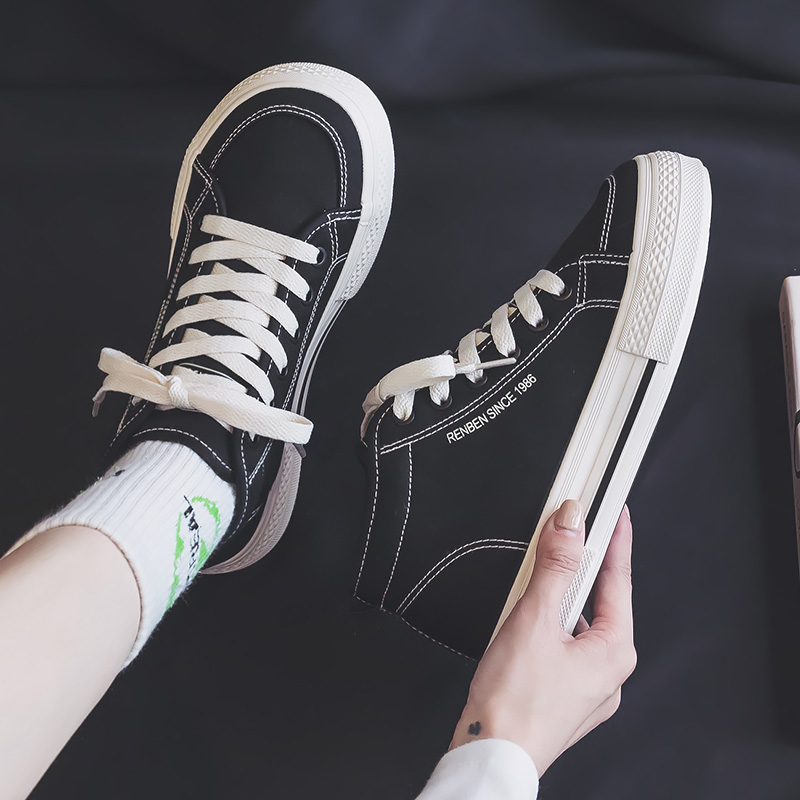 新款 低帮女鞋 百搭黑色韩版 潮流学生鞋 情侣 帆布潮牌休闲鞋 春秋季