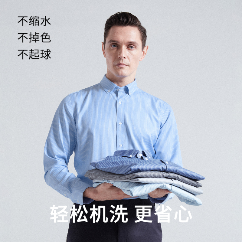 长袖 免烫可机洗高级感正装 条纹衬衫 新款 休闲衬衣 2025秋季 杉杉男士