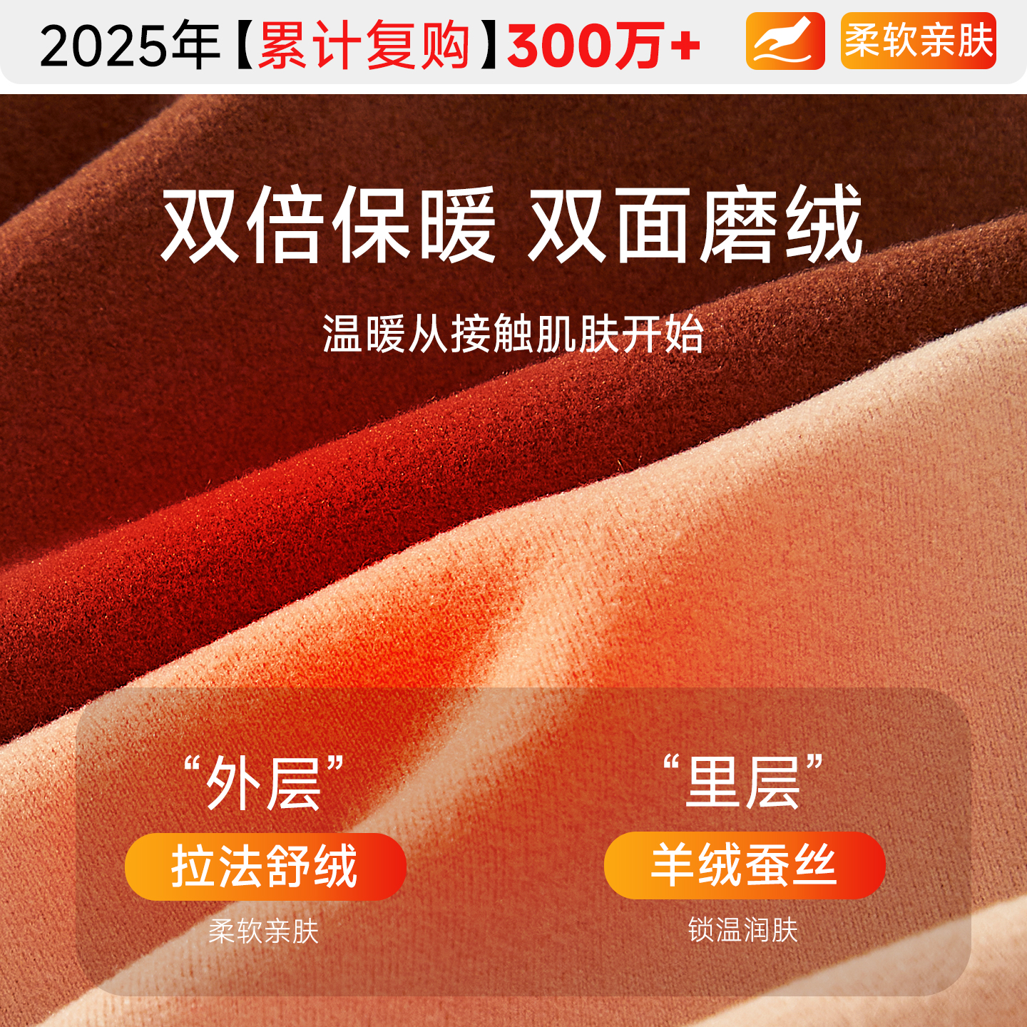 上衣磨毛 加绒加厚羊毛蚕丝秋衣秋裤 德绒保暖内衣女士套装 秋冬季
