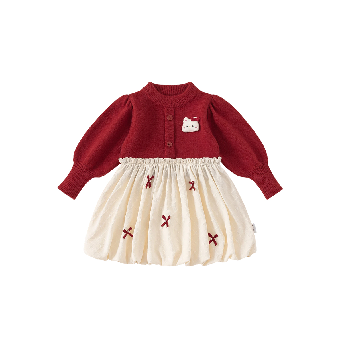 2025秋季 百搭针织连衣裙女款 拼接镂空刺绣蕾丝花边裙 白茶清欢