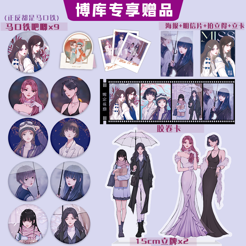 限定花期 心跳全纪录小说实体书 胶卷卡 她和她 限定故事 一本专属于女孩子 飞机盒 立卡 明信片 吧唧x9 赠15cm大立牌x2