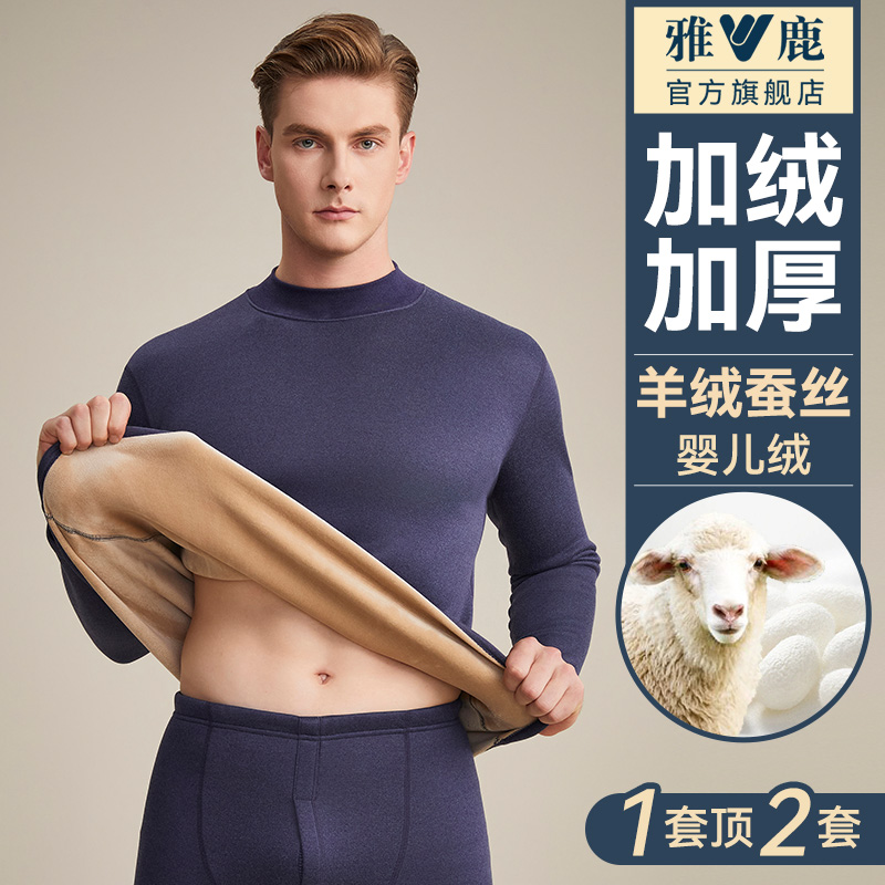 男款 雅鹿发热保暖内衣男士 套装 加绒加厚秋衣秋裤 德绒保温防寒 冬季