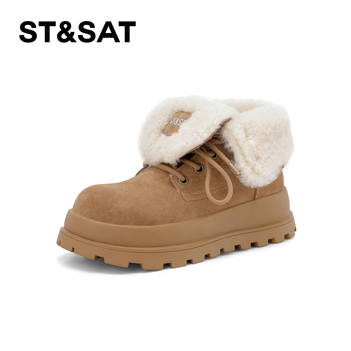 厚底大黄靴加厚保暖东北毛毛棉鞋 星期六加绒雪地靴女2025新款 冬季
