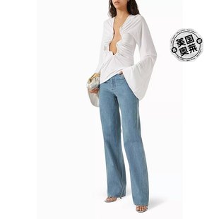 女2025春设计感洋气小衫 衬衫 上衣 长袖 花边立领流苏亮片蕾丝雪纺衫