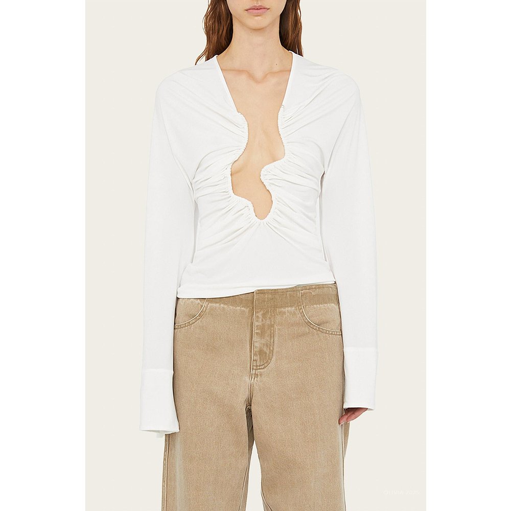 网纱木耳边打底衫 半高领雪纺衫 新款 t恤2021早秋上衣女装 蕾丝长袖