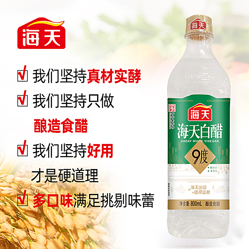 海天9度白醋800ml大瓶酿造白米醋高酸度餐饮装 腌制泡菜凉拌泡凤爪