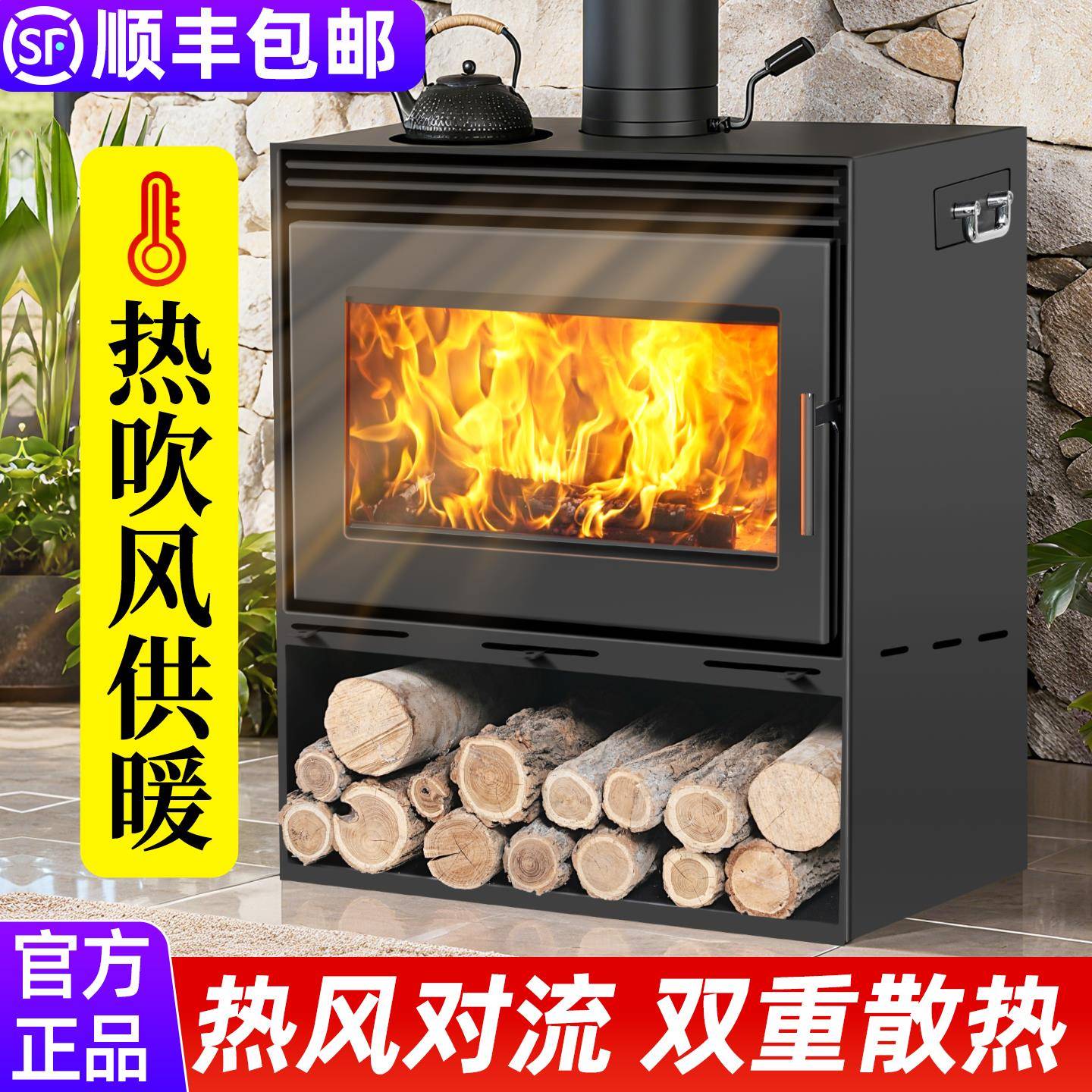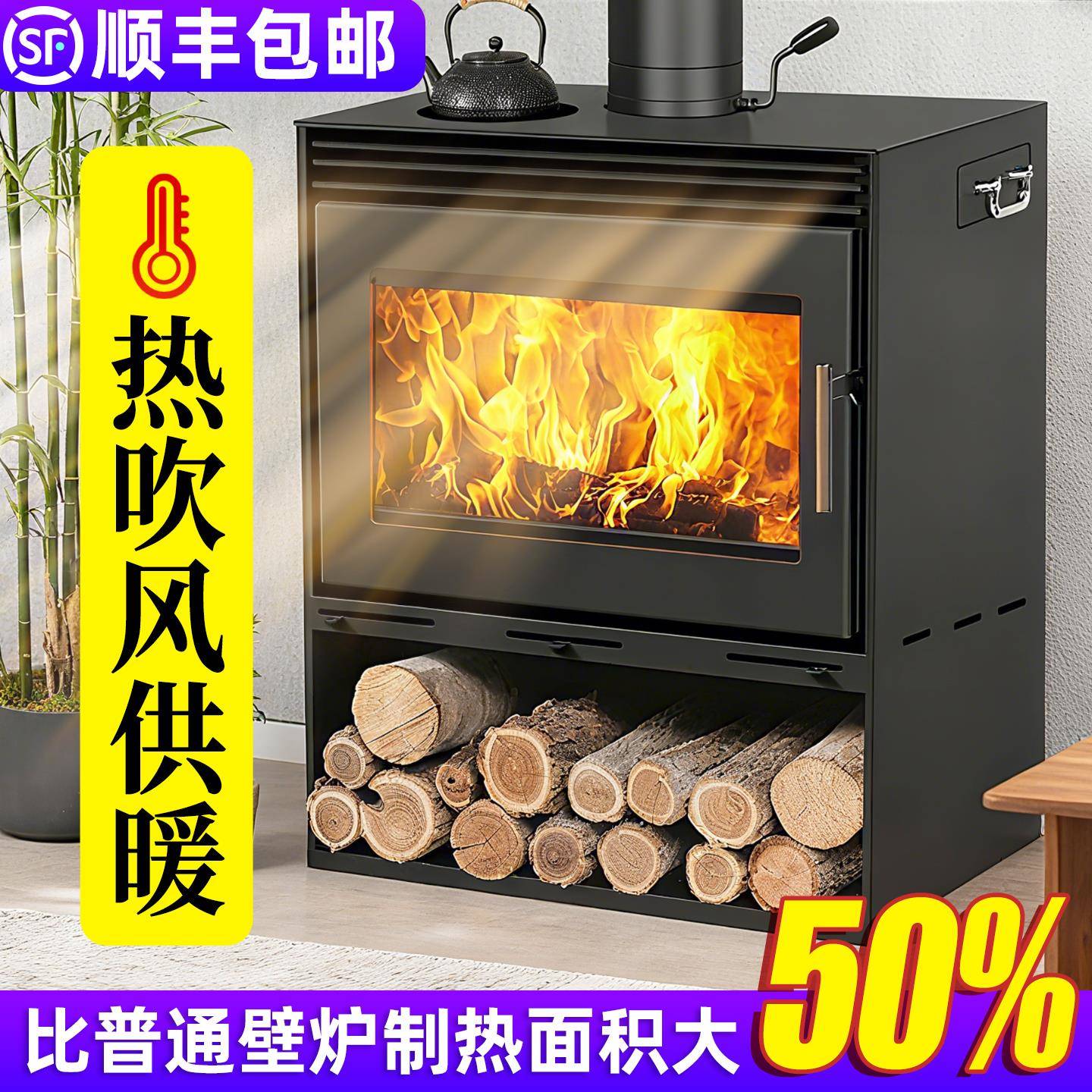 真火壁炉燃木柴火取暖炉家用室内民宿别墅冬天农村烧柴风机烤火炉
