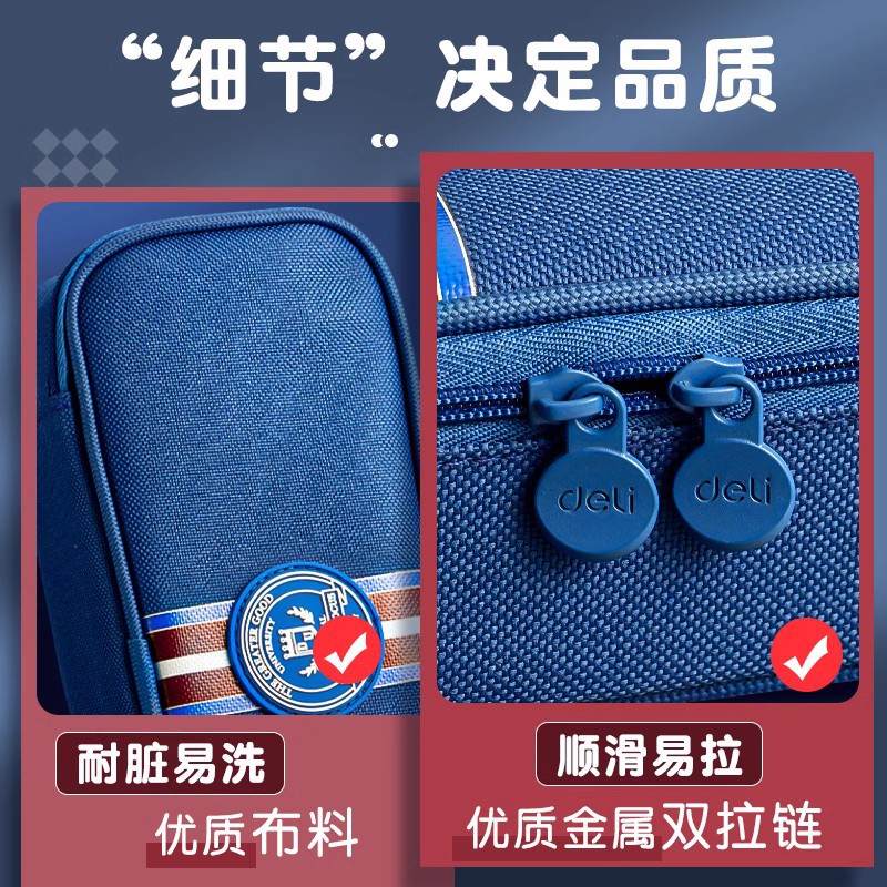 得力小方包笔袋简约小清新铅笔盒文具盒文具袋高中生初中生笔袋男孩子小学生用多功能大容量铅笔盒男女儿童