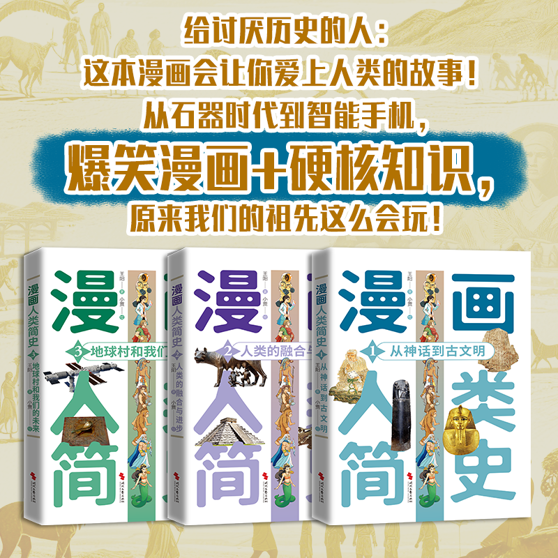 漫画人类简史全三册图文并茂人类历史简短有趣 人类历史进步历程勾勒近人类历史演进全景图漫画书籍