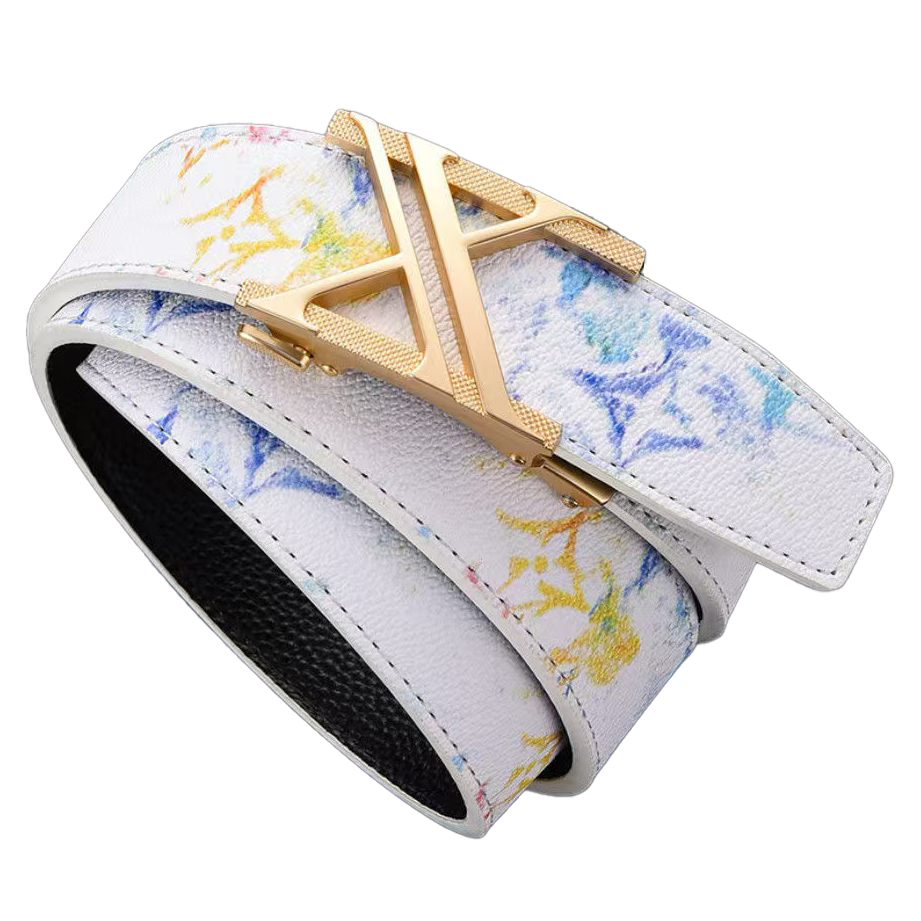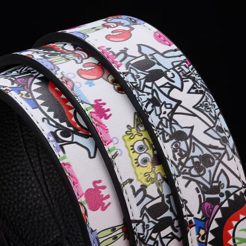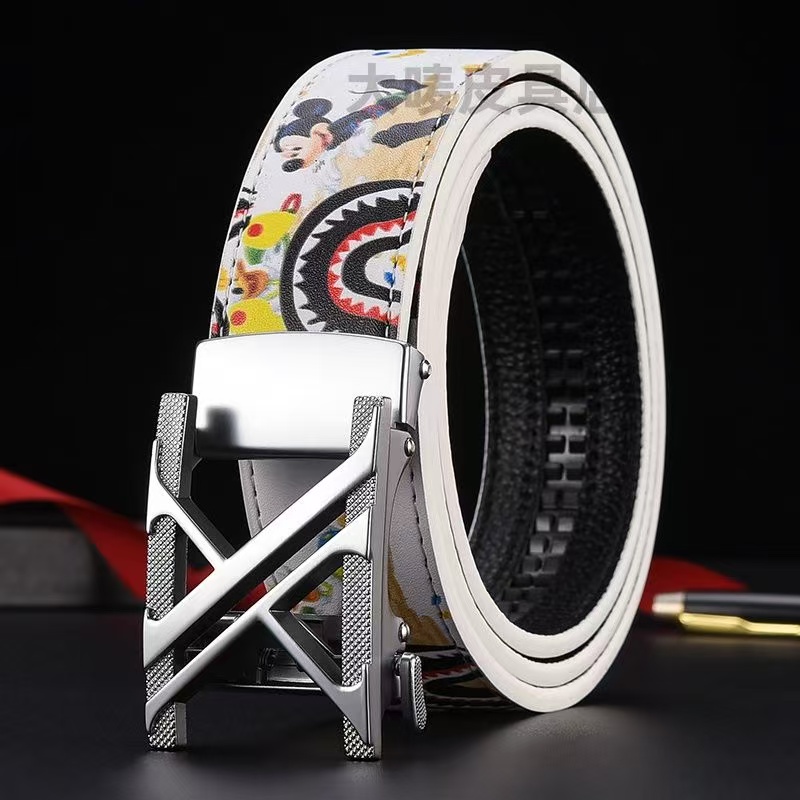 潮流网红 皮带真皮百搭字母涂鸦自动扣学生腰带牛仔裤 新款 潮流男士