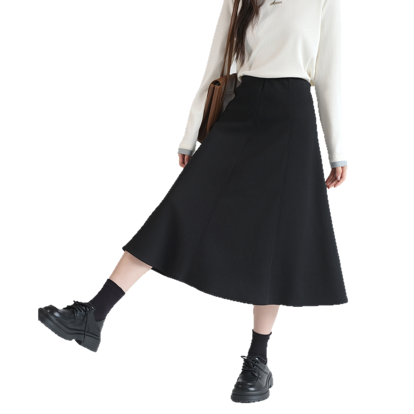 职业伞裙黑色西装 高腰垂感显瘦遮胯a字裙大摆裙 半身裙女秋冬大码