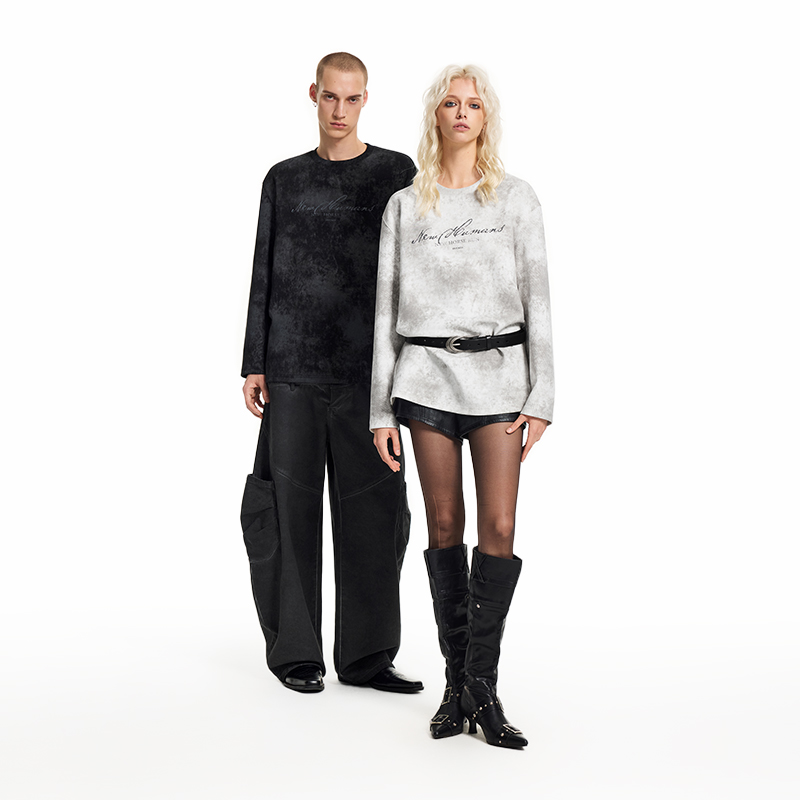 IMXS复古潮流字母印花圆领长袖 T恤通勤落肩上衣男女2025年新款