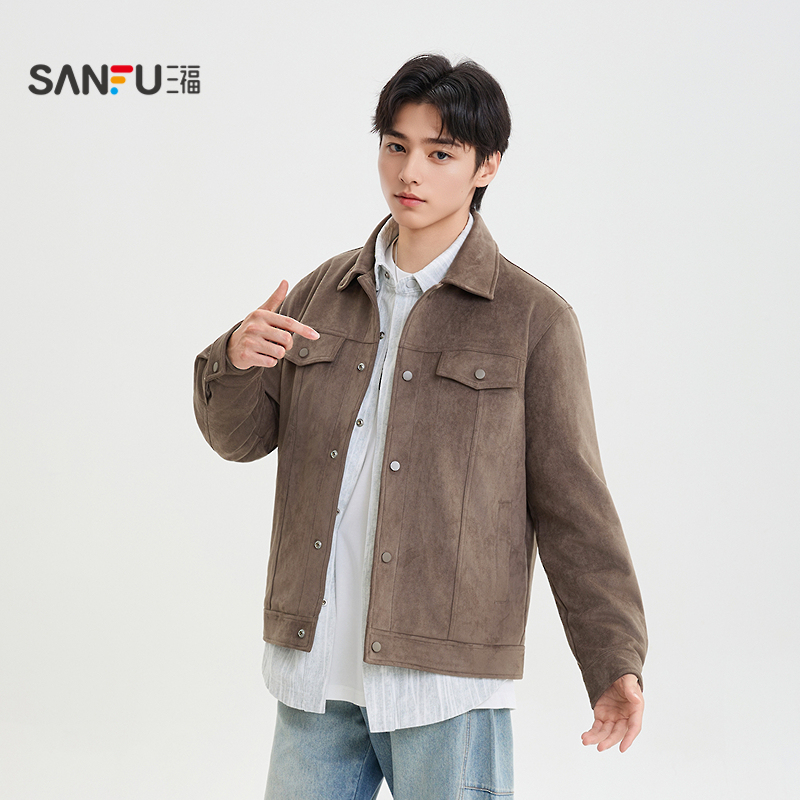 小个子翻领宽松夹克上衣女装 时尚 507135 秋季 三福皮衣外套2025新款