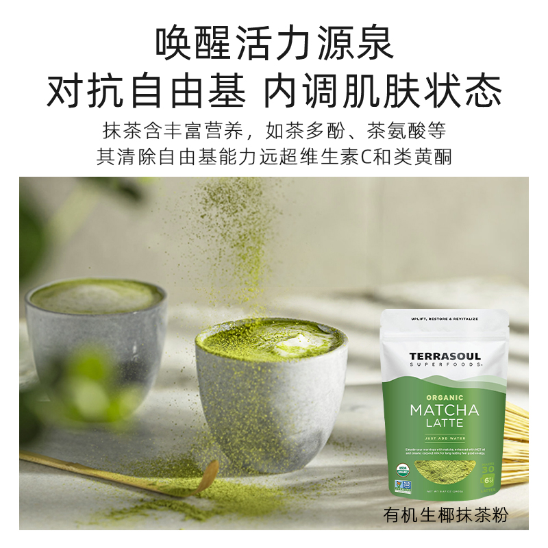 Terrasoul进口有机日本宇治抹茶拿铁粉MCT油椰子水粉无糖冲饮240g