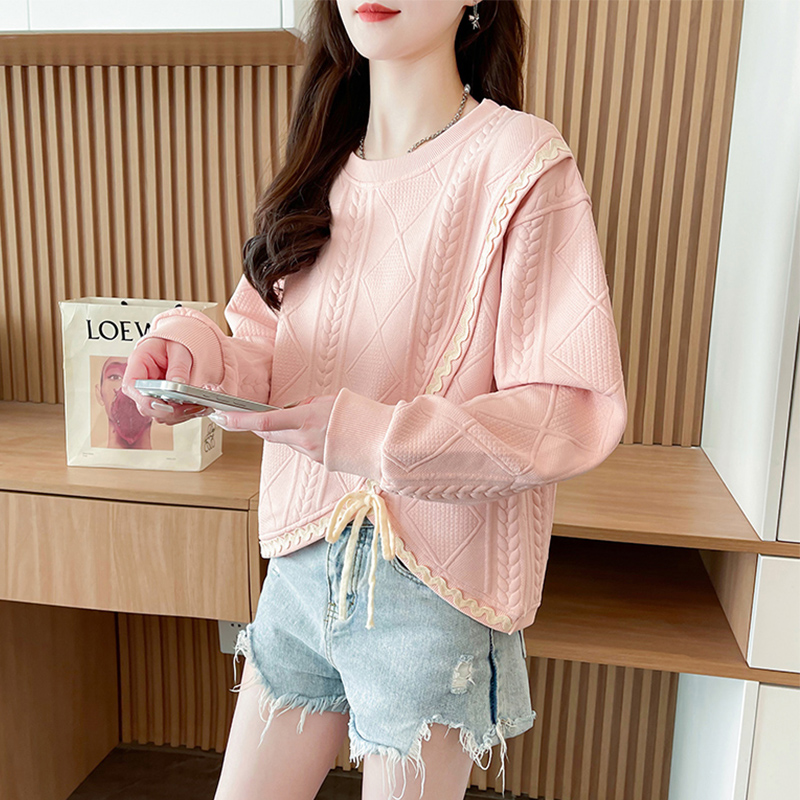 小个子短款 宽松薄款 上衣外套 春秋韩版 不规则蝴蝶结卫衣女2025新款