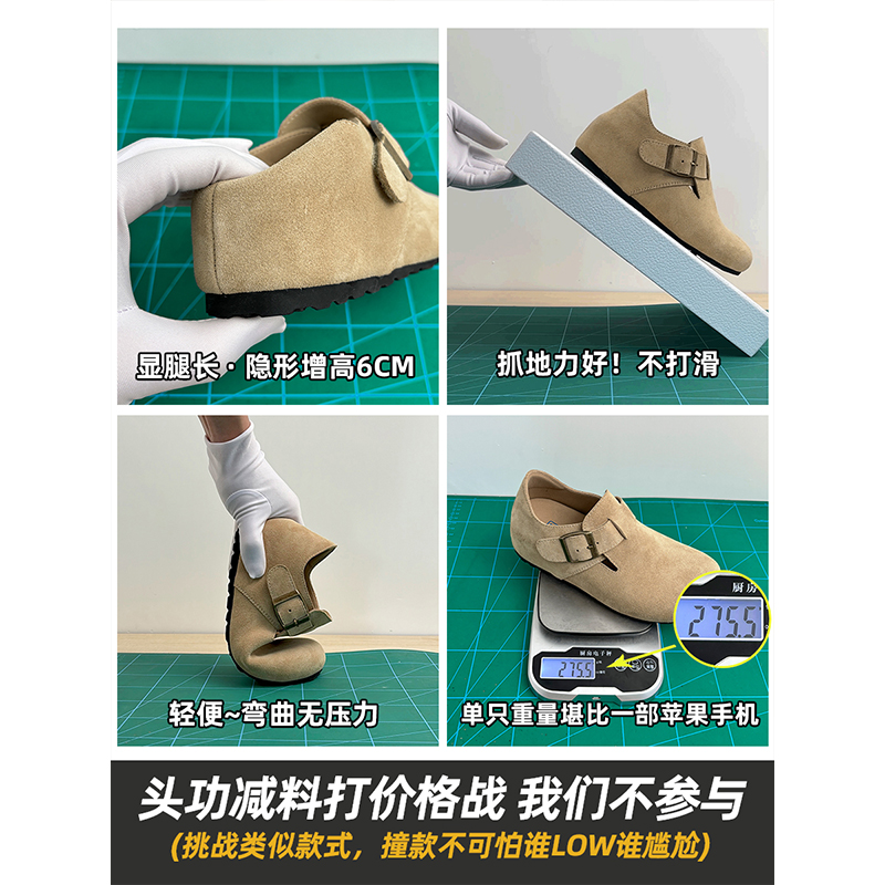 春秋厚底博肯单鞋 内增高版 女2025新款 坊真皮全包勃肯鞋 不二鞋