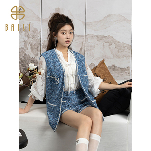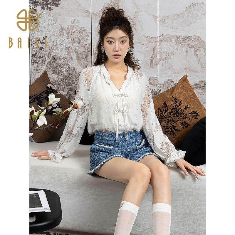 盘扣长袖 百丝气质新中式 衬衣城市度假镂空V领上衣女 新品 2025秋季
