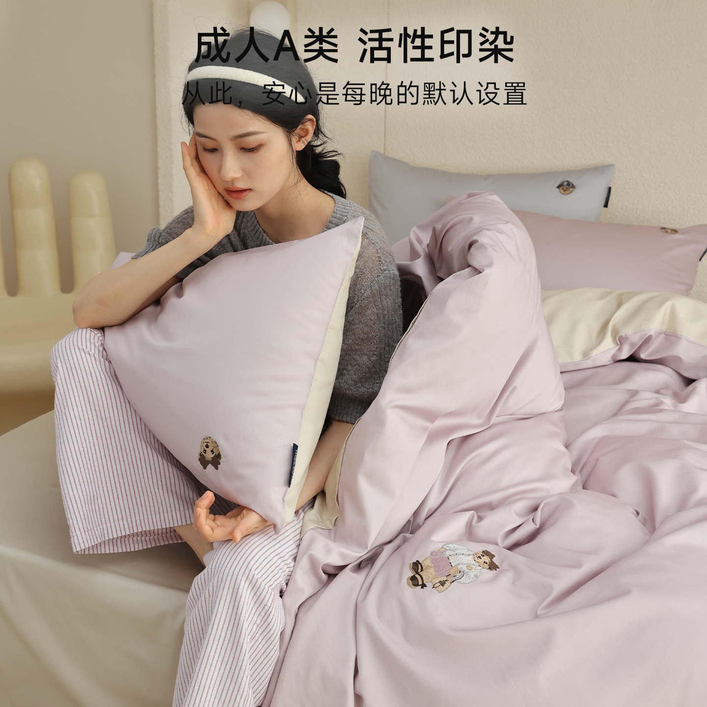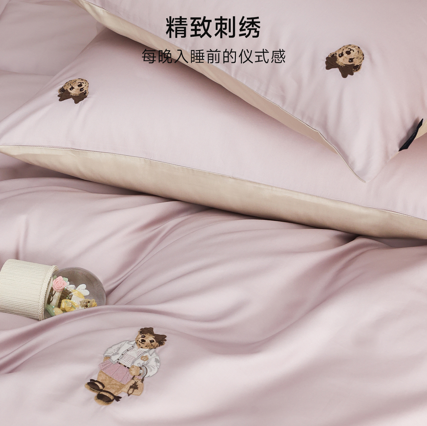 TeenieWeenie小熊刺绣简约床上四件套纯棉全棉2025新款 床单三件套