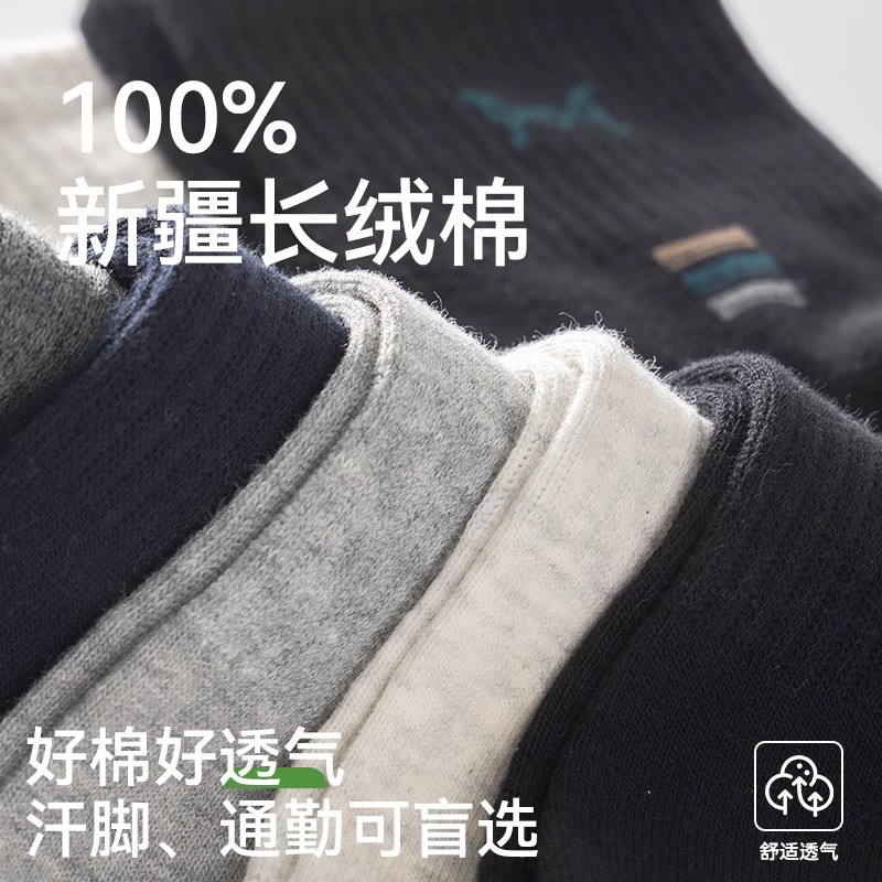 恒源祥诸暨袜子男士 纯棉吸汗防臭运动短袜夏天白色中筒袜男袜 夏季